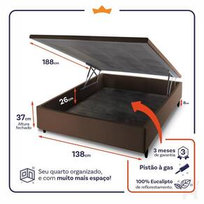 - Altura: 33 cm (colchão) + 37 cm (box baú) + 8 cm (pés) = 78 cm de altura;