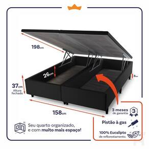 - Altura: 33 cm (colchão) + 37 cm (box baú) + 8 cm (pés) = 78 cm de altura;
