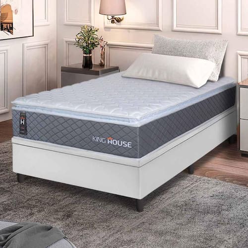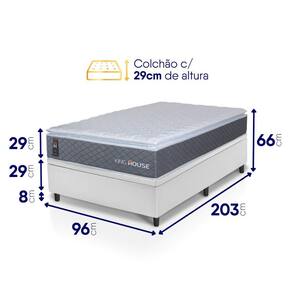- Altura: 66 cm (colchão) + 8 cm (box) = 74 cm de altura;