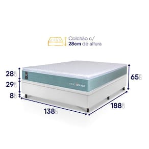 - Altura: 65 cm (colchão) + 8 cm (box) = 73 cm de altura;