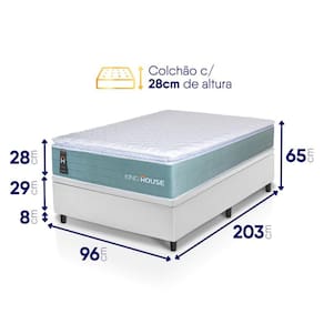 - Altura: 65 cm (colchão) + 8 cm (box) = 73 cm de altura;