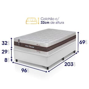 - Altura: 69 cm (colchão) + 8 cm (box) = 77 cm de altura;