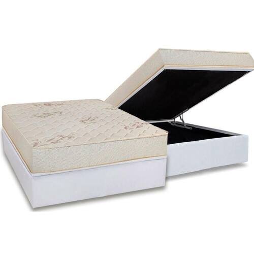Conjunto Box Baú Casal: Colchão Molas Luckspuma D45 Gran Luck Pró Saúde + Base CRC Courano White (138x188) - Blush