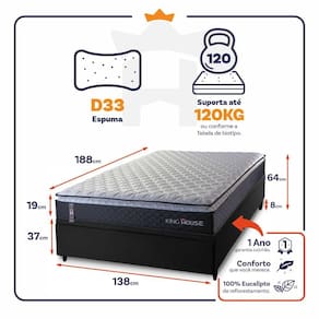 O Colchão Dakota é feito com os mais nobres materiais em sua composição, ele conta com espuma D33. Por ser mais macio, o colchão traz benefícios e ajuda no alinhamento da coluna. O colchão King House acomoda melhor o contorno do corpo, dispondo de forma correta quadris e ombros, expulsando as dores e problemas de coluna.