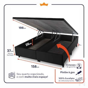 - Altura: 19 cm (colchão) + 37 cm (box baú) + 8 cm (pés) = 64 cm de altura;