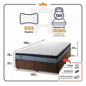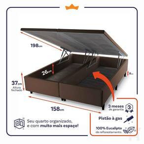 - Altura: 19 cm (colchão) + 37 cm (box baú) + 8 cm (pés) = 64 cm de altura;
