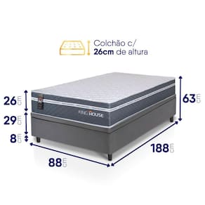 - Altura: 63 cm (colchão) + 8 cm (box) = 71 cm de altura;