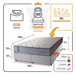 Feito com os mais nobres materiais em sua composição, ele conta com espuma D28. O colchão King House acomoda melhor o contorno do corpo, dispondo de forma correta quadris e ombros, expulsando as dores e problemas de coluna.