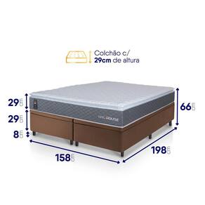 - Altura: 66 cm (colchão) + 8 cm (box) = 74 cm de altura;