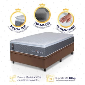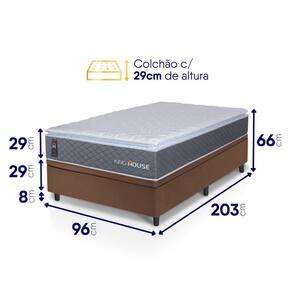 - Altura: 66 cm (colchão) + 8 cm (box) = 74 cm de altura;