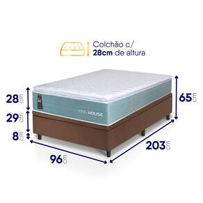 - Altura: 65 cm (colchão) + 8 cm (box) = 73 cm de altura;