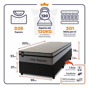O Colchão Preston é feito com os mais nobres materiais em sua composição, ele conta com espuma D28 e molas ensacadas. Por ser mais macio, o colchão de molas ensacadas individualmente traz benefícios e ajuda no alinhamento da coluna. O colchão King House acomoda melhor o contorno do corpo, dispondo de forma correta quadris e ombros, expulsando as dores e problemas de coluna.