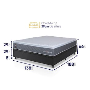- Altura: 66 cm (colchão) + 8 cm (box) = 74 cm de altura;