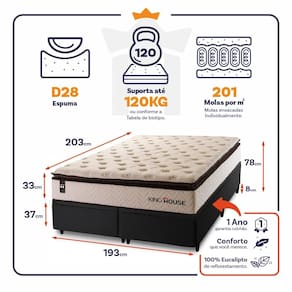 O Colchão Quartzo é feito com os mais nobres materiais em sua composição, ele conta com espuma D28 e molas ensacadas. Por ser mais macio, o colchão de molas ensacadas individualmente traz benefícios e ajuda no alinhamento da coluna. O colchão King House acomoda melhor o contorno do corpo, dispondo de forma correta quadris e ombros, expulsando as dores e problemas de coluna.