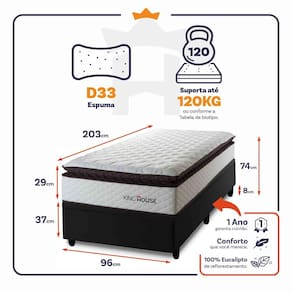 Medidas do Colchão: 88x188x29 cm, 96X203x29 cm, 138x188x29 cm, 158x198x29 cm, 193x203x29 cm.