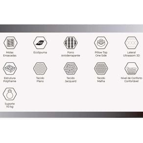 Dimensões(Cm): Comprimento(Profundidade): 188cm x Largura: 88cm x Altura: 28cm Tipo de Colchão - Molas Vantagens Extras de Colchão - Ecologicamente Correto - c/ Sistema Polyframe Tipo de Pillow - Pillow Top Americano Tecido com Tratamento - AntiÁcaro e AntiFungo Tipo de Bordado do Tecido de Revestimento - Contínuo Tipo Tecido de Forração Revestimento - Malha de Alta Qualidade - Jacquard Tipo de Forração do Revestimento Inferior - Antiderrapante Tipo de Tecido de Revestimento da Faixa Lateral - Jacquard - Aerado Cor do Tecido de Revestimento da Faixa Lateral - Clara Cor do Tecido do Tampo - Claro Modo de Utilização - One Side Camadas Interna do Estofamento de Espuma - AG Tipo de Estrutura Ortopédico - AG Tipo de Mola - Ensacadas MasterPocket Nível de Firmeza do Colchão - Macio c/ Firmeza - Macio Peso Máximo Suportado - 110 kg Certificação de Qualidade - Qualidade Aprovada - INMETRO - ISO 9001 Nossa Avaliação - Qualidade Muito Boa Tempo de Garantia - 3 meses - 12 meses Tipo de Conforto - Macio c/ Firmeza