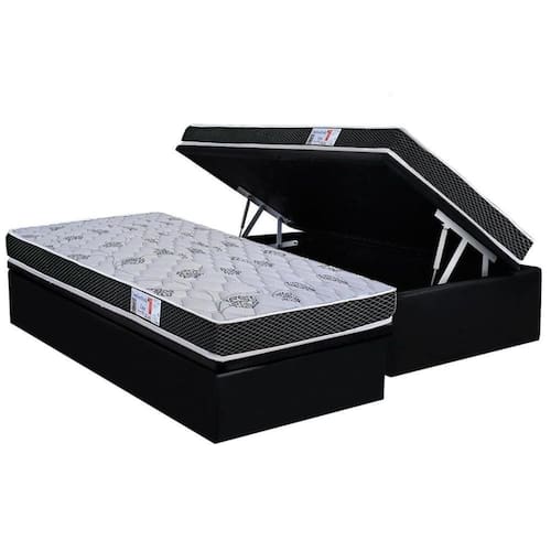 Colchão: Espuma D20, Tecido Bordado | Cama Box: Estrutura em madeira, Revestimento em Suede Black (Poliéster)Vendido e entregue por WebContinental