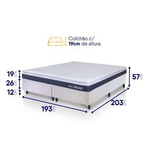Medidas Colchão + Box: 88x188x57 cm, 96x203x57 cm, 128x188x57 cm, 138x188x57 cm, 158x198x57 cm, 193x203x57 cm.