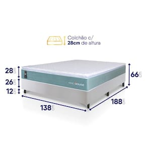 - Altura: 54 cm (colchão) + 12 cm (box) = 66 cm de altura;