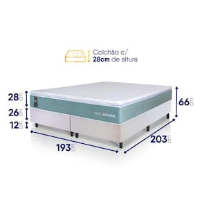 - Altura: 54 cm (colchão) + 12 cm (box) = 66 cm de altura;