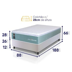 - Altura: 54 cm (colchão) + 12 cm (box) = 66 cm de altura;