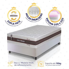 Feito com os mais nobres materiais em sua composição, ele conta com espuma D26 E D33 e molas ensacadas. Por ser mais macio, o colchão de molas ensacadas individualmente traz benefícios e ajuda no alinhamento da coluna. O colchão Mali acomoda melhor o contorno do corpo, dispondo de forma correta quadris e ombros, expulsando as dores e problemas de coluna.Não perca mais tempo e garanta já o seu Conjunto Box Mali!