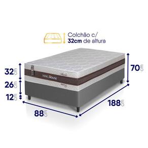 - Altura: 58 cm (colchão) + 12 cm (box) = 70 cm de altura;