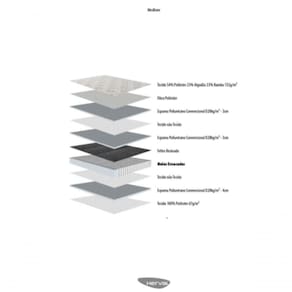 Sua estrutura conta com camadas de espuma de alta densidade, o que garante durabilidade ao seu produto. O sistema de molejo de Molas Ensacadas proporciona grande amortecimento ao corpo. Por serem ensacadas individualmente, resultam no benefício de quando o lado do colchão recebe o peso do corpo, o outro lado não recebe interferência, deixando sua noite muito mais tranquila.