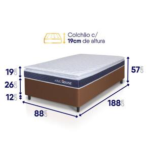Medidas Colchão + Box: 88x188x57 cm, 96x203x57 cm, 128x188x57 cm, 138x188x57 cm, 158x198x57 cm, 193x203x57 cm.