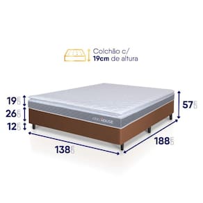- Altura: 45 cm (colchão) + 12 cm (box) = 57 cm de altura;