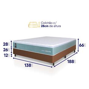 - Altura: 54 cm (colchão) + 12 cm (box) = 66 cm de altura;