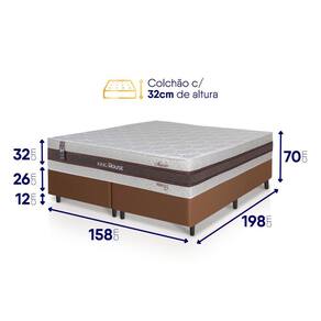 - Altura: 58 cm (colchão) + 12 cm (box) = 70 cm de altura;