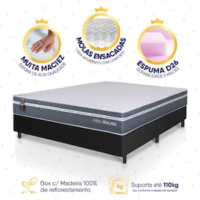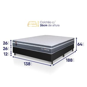 - Altura: 52 cm (colchão) + 12 cm (box) = 64 cm de altura;