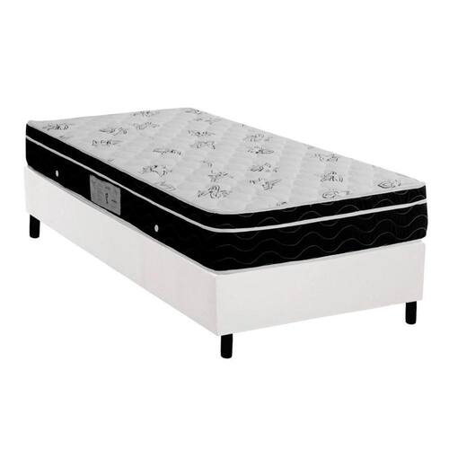 Conjunto Box Solteiro: Colchão Molas Ortobom Nanolastic Physical Spring + Base CRC Courano White(88x188)