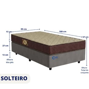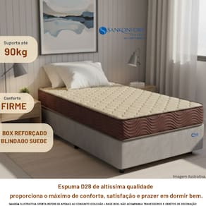 Cama Box Solteiro : Estruturada, blindada e resistente A base box é fabricada com madeira de Pinus tratada, oferecendo muita estabilidade e longa durabilidade. O revestimento em suede premium garante elegância e fácil combinação com qualquer decoração. Medida do Box com os pés : 88x188x40 LxCxA Altura do Box Sem os pés :27cm Altura dos pés:13cm A base já vai pronta, sendo necessário apenas rosquear os pés reforçados que acompanham o produto. Atenção às dimensões e entrega Antes de finalizar a compra, verifique se as medidas do produto passam por portas, elevadores, corredores e escadas. Por segurança, as transportadoras não realizam içamento, entrega por janelas ou locais de risco. Qualidade Sankonfort Fabricado pela Sankonfort Colchões, referência em qualidade, inovação e conforto. Uma combinação perfeita para quem deseja dormir melhor todos os dias.