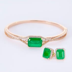 Conjunto Bracelete e Brinco Esmeralda Tamanho 16cm -