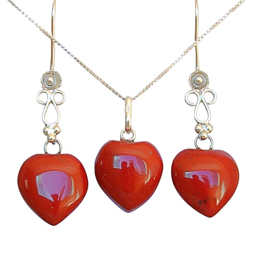 Conjunto NLux: Brinco e Colar Coração Jaspe Vermelho em Prata 950. Elegância e estilo em uma só peça. Aproveite e compre já o seu!