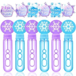 - O pacote inclui - Ele vem com 24 varinhas de bolhas congeladas. Tem 2 cores (azul e roxo), design de floco de neve e vale-presente de agradecimento. Cada varinha de bolha tem o mesmo tamanho e a capacidade é de cerca de 35 ml, 1 varinha de bolha é aproximadamente igual a 6 mini varinhas de bolha. O tamanho e o peso adequados são mais adequados para crianças de 3 a 10 anos, fáceis de transportar. Essas lindas varinhas de bolha são muito divertidas para as crianças e adicionarão diversão a qualquer festa temática.