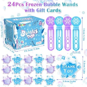 - Frozen Bubble Wands Bulk - Ao contrário das mini varinhas de bolha comuns, projetamos cuidadosamente a forma de floco de neve, adotamos cores elegantes (roxo e azul) e preparamos 24 cartões de agradecimento. Além disso, cada varinha de bolhas tem 3 orifícios de tamanhos diferentes, as crianças podem soprar bolhas mais coloridas de tamanhos diferentes, o que melhora a jogabilidade e a diversão. É difícil para as crianças não gostarem dessas mini varinhas de bolha.