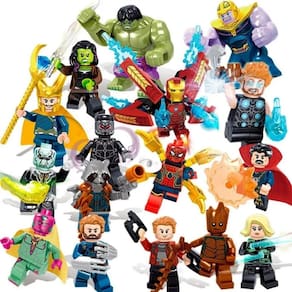 Este conjunto de 16 minifiguras é perfeito para fãs de filmes e jogos de construção. As figuras são com blocos de construção, o que significa que você pode usá-las para criar suas próprias cenas e aventuras. O conjunto inclui 16 dos personagens mais famosos do filme, como Thanos e a versão gigante do Hulk, além de outros personagens populares. Cada figura é cuidadosamente detalhada e apresenta cores vibrantes e brilhantes, o que as destaca em qualquer cena. Além disso, o conjunto também inclui blocos de construção que você pode usar para montar suas próprias cenas e estruturas. Os blocos são de alta qualidade e projetados para se encaixarem perfeitamente com as figuras e outros blocos de construção. As figuras têm o tamanho tradicional da versão gigante de Lego, Hulk e Thanos, o que as torna fáceis de incorporar em qualquer cena ou estrutura que você esteja construindo. Além disso, seu tamanho pequeno os torna ideais para coletar e exibir em sua prateleira ou mesa