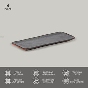 Conjunto c/ 4 Travessas Retangular Pequena Orgânico Titanium 22x9,5cm