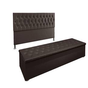 Conjunto Cabeceira Casal e Recamier Baú 1,60m Madrid Suede Marrom Dal Poz Estofados