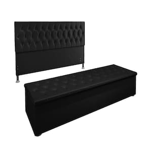 Conjunto Cabeceira Casal e Recamier Baú 1,60m Madrid Suede Preto Dal Poz Estofados