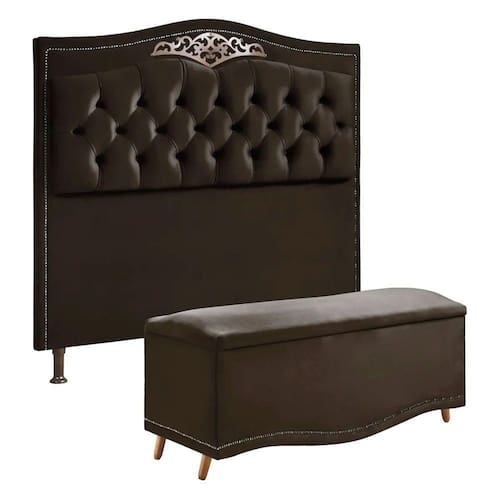Conjunto Cabeceira E Calçadeira Holanda 140 Cm Veludo Marrom Chocolate Speciale Home Marrom