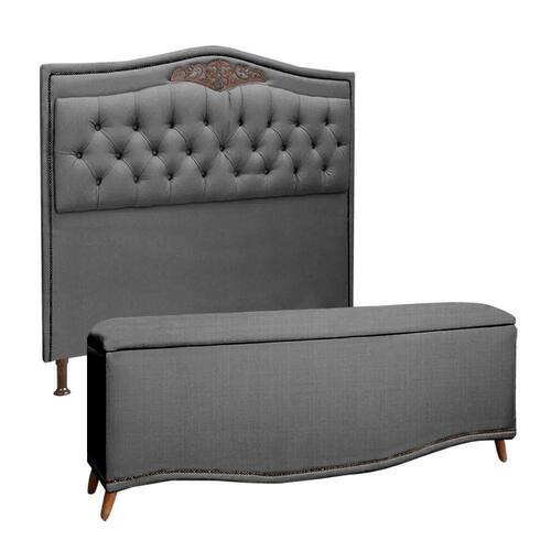 Conjunto Cabeceira e Calçadeira Holanda 140cm Linho Speciale Home - Grafite