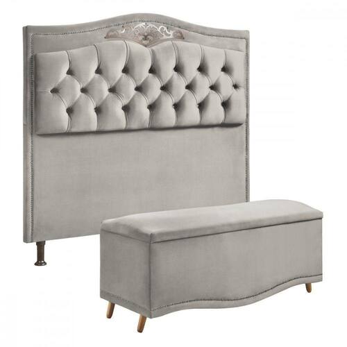 Sao resistentes e confeccionadas com materiais de alta qualidade, suas medidas sao indicadas para cama box de 1,38 cm. Combine a cabeceira com travesseiros e almofadas de sua preferencia e torne sua decoracao ainda mais charmosa e aconchegante. A calcadeira pode ser usada para sentar e para guardar objetos, pois ela funciona como um bau.