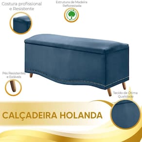 Conjunto Cabeceira E Calçadeira Holanda 1,60 Cm Veludo Speciale Home Azul