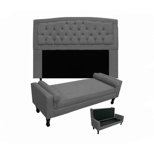 O Conjunto Geovana + Fênix é o kit perfeito para seu quarto, possui um modelo único e totalmente diferenciado, que vai levar um toque de aconchego e charme final que seu quarto tanto precisa. Uma ótima composição para deixar seu quarto mais luxuoso e organizado podendo colocar cobertas, travesseiros ou sapatos dentro no baú. Produtos com estrutura de madeira de eucalipto, ecologicamente correto, espuma de poliuretana, revestimento em Suede.