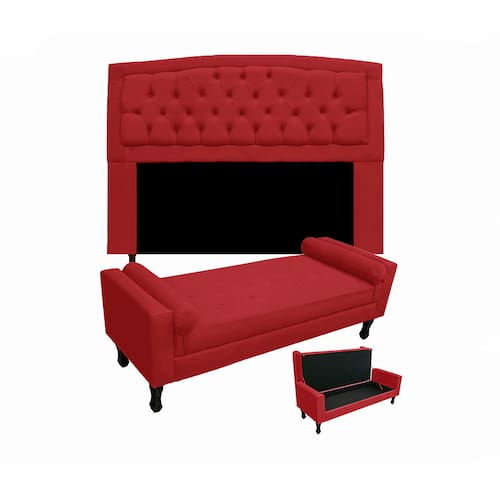 O Conjunto Geovana + Fênix é o kit perfeito para seu quarto, possui um modelo único e totalmente diferenciado, que vai levar um toque de aconchego e charme final que seu quarto tanto precisa. Uma ótima composição para deixar seu quarto mais luxuoso e organizado podendo colocar cobertas, travesseiros ou sapatos dentro no baú. Produtos com estrutura de madeira de eucalipto, ecologicamente correto, espuma de poliuretana, revestimento em Suede.