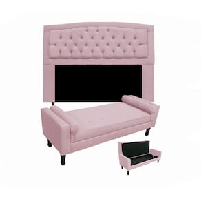 O Conjunto Geovana + Fênix é o kit perfeito para seu quarto, possui um modelo único e totalmente diferenciado, que vai levar um toque de aconchego e charme final que seu quarto tanto precisa. Uma ótima composição para deixar seu quarto mais luxuoso e organizado podendo colocar cobertas, travesseiros ou sapatos dentro no baú. Produtos com estrutura de madeira de eucalipto, ecologicamente correto, espuma de poliuretana, revestimento em Suede.
